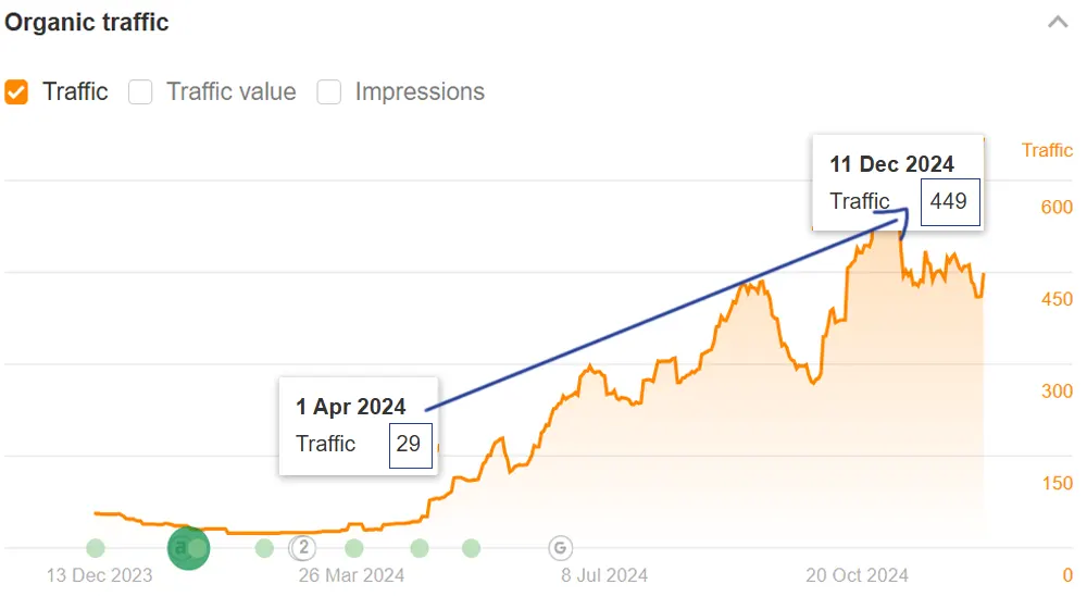 Pentru aces site nou, am folosit o abordare mai strategica, concentrandu-ma pe o combinatie de cuvinte-cheie locale valoroase, dar cu competitie redusa, si pe zone mai usor de cucerit. Aceasta tactica a permis site-ului si, treptat, sa se pozitioneze si pe zone mai competitive, totul cu costuri minime de marketing.